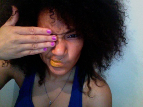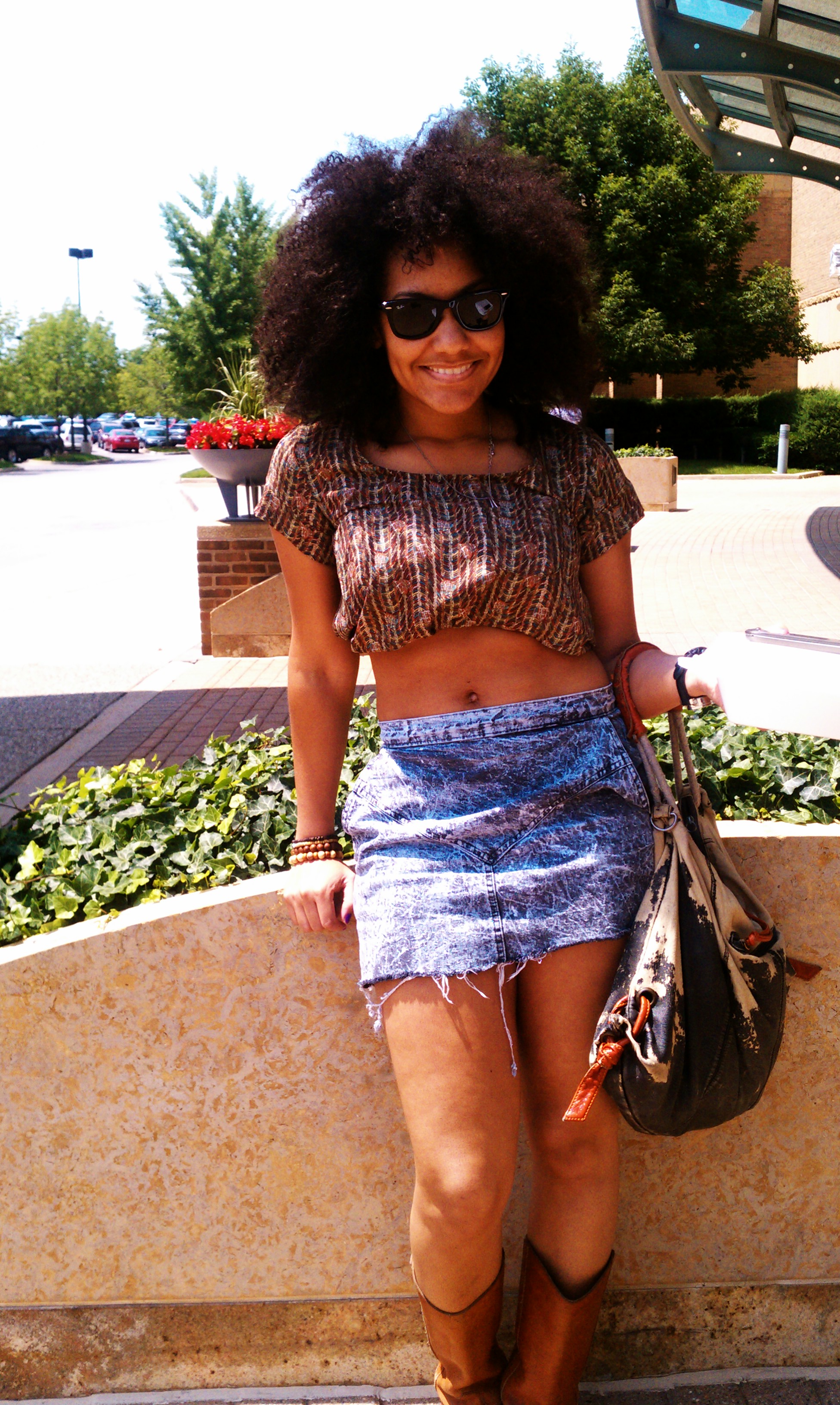 R: Going natural hasn’t affected me in too many ways. At first I was little self conscious about going into work (teaching) with my hair all over the place. It’s really easy for me to get comfortable in an institution though, so after about a week I realized it would be totally normal for me to rock my natural look, as it compliments my personality so well. Of course everyone else rocked with it. My natural hair gets me more attention. I’m now known as the girl with the curly/frizzy hair. My friends look at me as though I’m a different person if I ever straighten my hair. Kind of funny š It also works as an accessory in a way. It’s a little difficult for me to look boring with my curly fro, even when I have on just a tank & jeans.