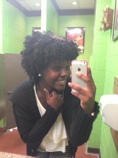 S: It is a very long story. I have actually been natural for 5 years, but when I decided to go natural I just wanted to stop getting relaxers. I didn’t know much about my natural hair so I continued to flat iron it as if it were relaxed…every 2 weeks. This resulted in very bad heat damage, so my hair wouldn’t curl up. After I did a ton of research I realized that I couldn’t repair the severe heat damage unless I transitioned out of it or cut it all off. I decided to do the big chop 17 months ago and this is where I am now. I felt as if I really didn’t need a relaxer. I only got them about twice a year and I realized that my hair looked the same flat ironed with a relaxer as when I didn’t have one. It looked more full and healthy without the relaxer.