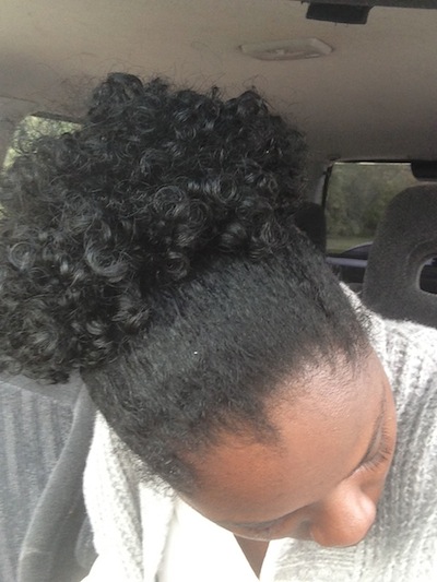 S: During the course of a month I wear my hair in a bun a lot because it is easy for me to maintain when going to work, etc. I wear a wash and go during the weekends and puffs as well. I don’t really do twist outs or braid outs because my hair isn’t as long as I want it to be, but I’m sure when my hair gets to the length I want I will do them. For my wash and go’s I keep it pretty simple. I use Let’s Jam Custard and Fantasia IC Gel. Sometimes I try different products, but those are my staple products as of now. For my buns I use Eco Styler Gel.
