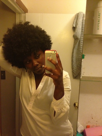 S: My hair has the most shrinkage on my first day wash and go. I embrace it. At night I put my hair in a high puff to stretch it and in the morning my hair looks a little longer and I rock it that way.