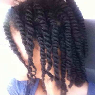 S: My favorite go to style when I don’t have enough time to style is an old twist out, pony puff with flat twists in the front.