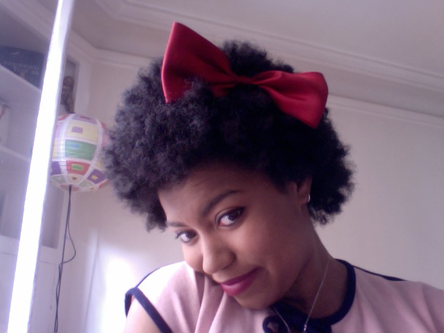S: Going natural has affected everything. It’s affected the way people react towards me, and most of all it’s affected the way I see myself. I had the most frustration towards my hair when I was trapped in between the TWA and the full-fledged afro phase. I felt very self-conscious and tried to over compensate with overtly feminine clothes and bows. Now that I’m reigning in the fully glory of the fro I have more confidence than ever. It’s awesome to know that I can feel beautiful without having to chemically alter myself.