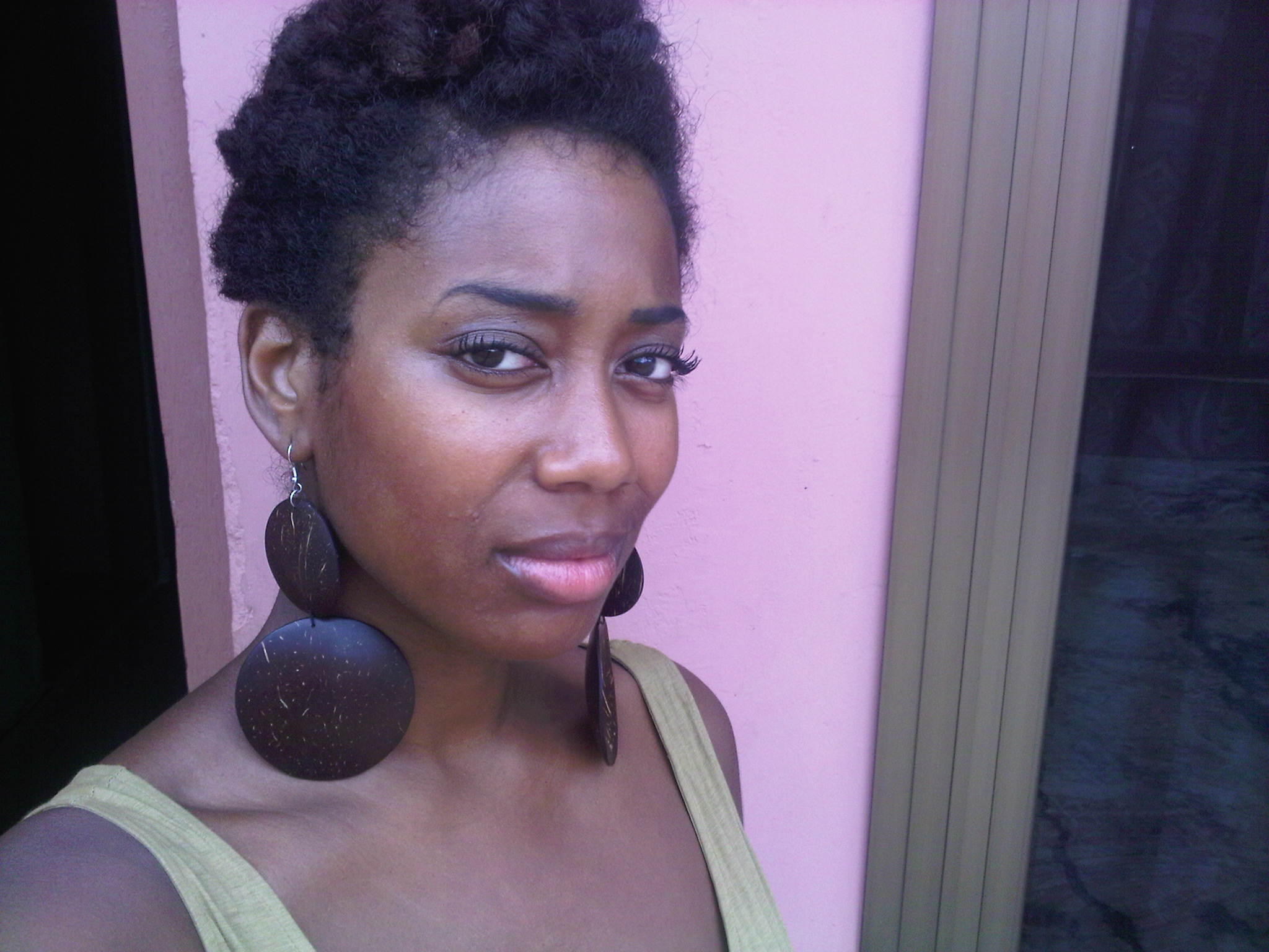 It’s an overstatement to say that I really thought over going natural. I just did it. Yes, I did it myself standing in front of the mirror in the bathroom with sewing scissors. I think it was in ’07 when I started to get really tired to say the least, of maintaining relaxed hair. The burn marks as a cause of flat ironing while in a hurry weren’t a good look and you’re not even allowed to sweat! After not having my hair relaxed for quite some time I started noticing a cute curly outgrow and all I thought was “lemme see more of that!” Nothing revolutionary really.