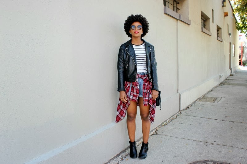 N: My three current favorites are all fall pieces; my faux leather jacket, my coated burgundy skinny jeans and a pair of black cutout ankle booties.