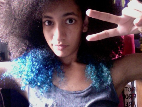 T: The only time my hair was ever not natural was when I had my hair relaxed when I was in 7th grade. I kept up with it, however my hair decided to start curling back. I had the same thing done again, but gave up on the upkeep after a while and let my hair do as it pleased. After three years of having awkwardly partly curly, partly wavy hair, I cut it. My hair was at about my waist, and I cut it to the middle of my ears. I’ve been natural now for five years.