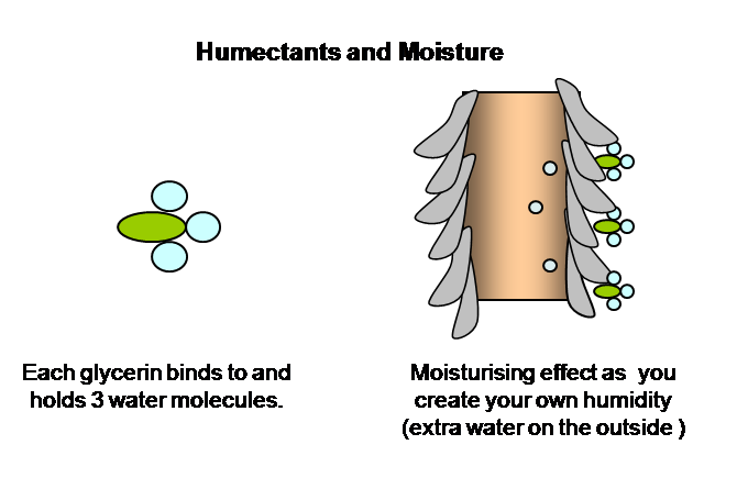 Humectants such as glycerin are special because they ‘hold’ water. The key step to successful use of a humectant is to first combine it with water so that it can perform ‘the hold’. The next important step is to use the humectant as a leave in and not as part of the hair conditioner. Most humectants are very soluble in water which means a rinse cycle (or rain) can easily wash them off hair. Humectants are tricky to use because they will be affected by weather and often temperature. Too little will have no effect and too much will create a sticky feeling. There is a lot of trial and error to finding the right balance, just be patient.