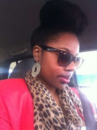 Y: I enjoy trying new products. I mean a lot of naturals are guilty of being product junkies. However, my go to products are Shea Moisture Curl Enhancing Smoothie and the Deep Treatment Masque. I use raw shea butter and coconut oil to seal my ends and apply to my roots. As far as leave-in conditioners, I use Giovanni and Jane Carter’s Revitalizing Leave-In Conditioner spray. I try to condition my hair weekly and shampoo once or twice a month. After I detangle using conditioner, I usually do a braid out and let my hair air-dry. I never apply heat to my hair myself; I only get my hair professionally straightened once or twice a year and this is when I get a trim as well. Almost every 3 months I put a protective style in my hair, whether it is Havana twists, box braids, mini twists, or an updo. I enjoy keeping all my hairstyles natural based; therefore, the only hair extensions I will add to my hair is for braids. Other than that, I love allowing my fro to breathe and do its own thing.