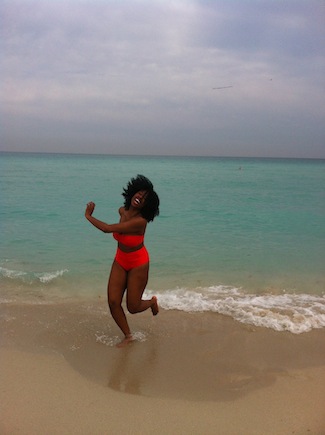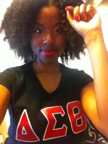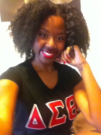 Oo-oop, my soror! Loving the hair and that red bathing suit, of course!